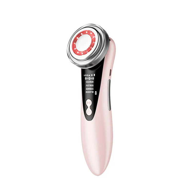 07503052374950 Máquina efectiva para aclarar y embellecer la piel, mejora el tono y la textura de la piel, aumenta el brillo y la elasticidad de la piel. Cuenta con luz roja para reparar la piel dañada, reducir los poros, tensar la piel. Luz azul para reparar la piel, sin cicatrices ni pigmentos. La luz amarilla mejora la aspereza de la piel, las arrugas, el enrojecimiento, etc. Elimina a fondo la suciedad facial a través de la función de iones, elimina suavemente el maquillaje, reduce la obstrucción de los poros. Ayuda a absorber rápidamente las mascarillas y los serums potenciando el efecto de estos. El instrumento de belleza es pequeño y fácil de transportar cuando sale. No ocupa mucho espacio